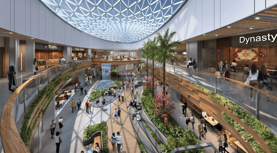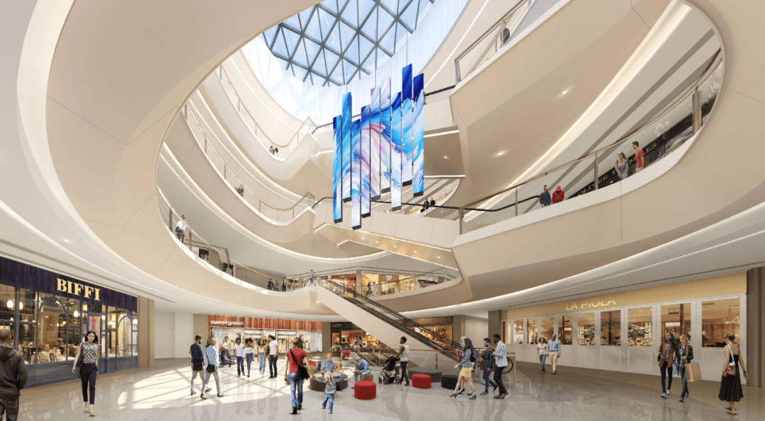 网状形态的全景日光天窗,柔和的将自然光引入室内,把逛公园”与“逛商场”的两种活动需求相结合,大面积的打造更具休闲价值的城市共享空间。