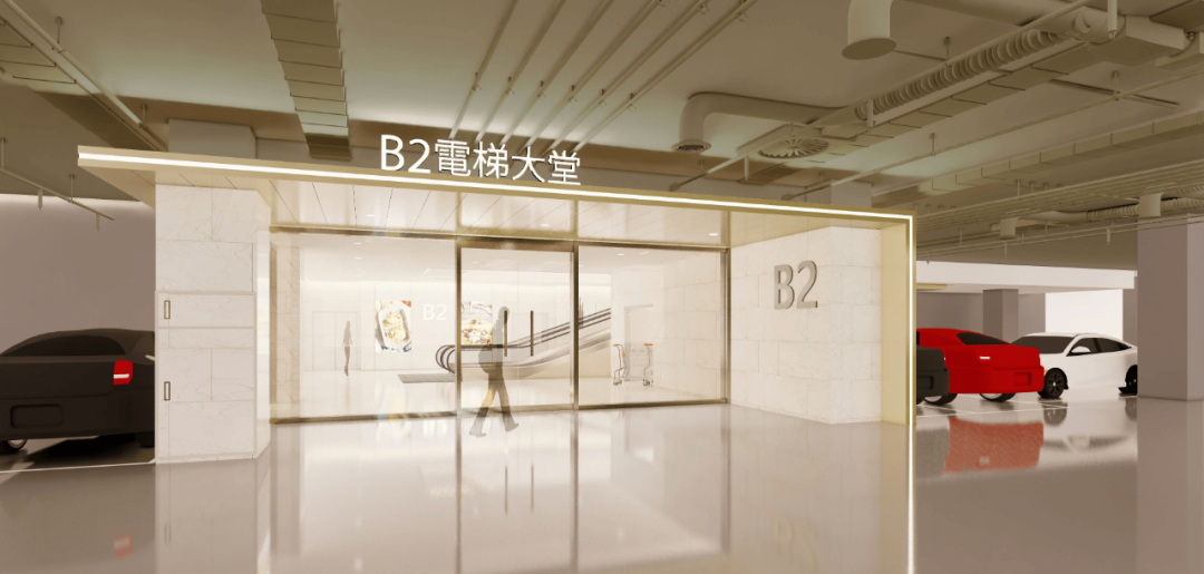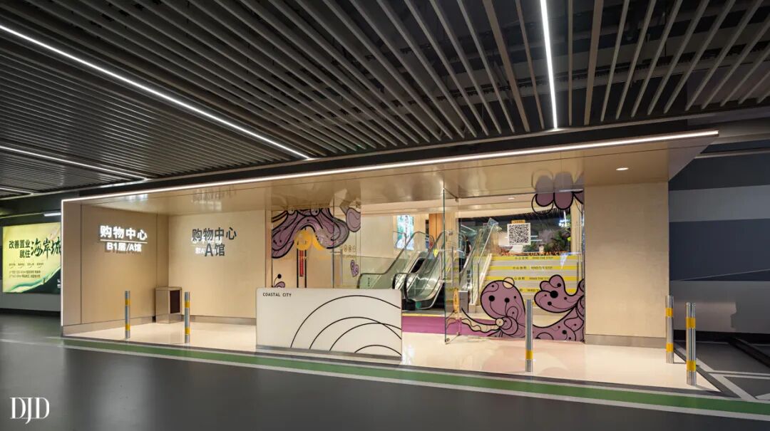 地下停车场也是延续品质印象而着重打造的空间之一。衔接购物中心的入口处,更是自驾客户感受品质的第一窗口。